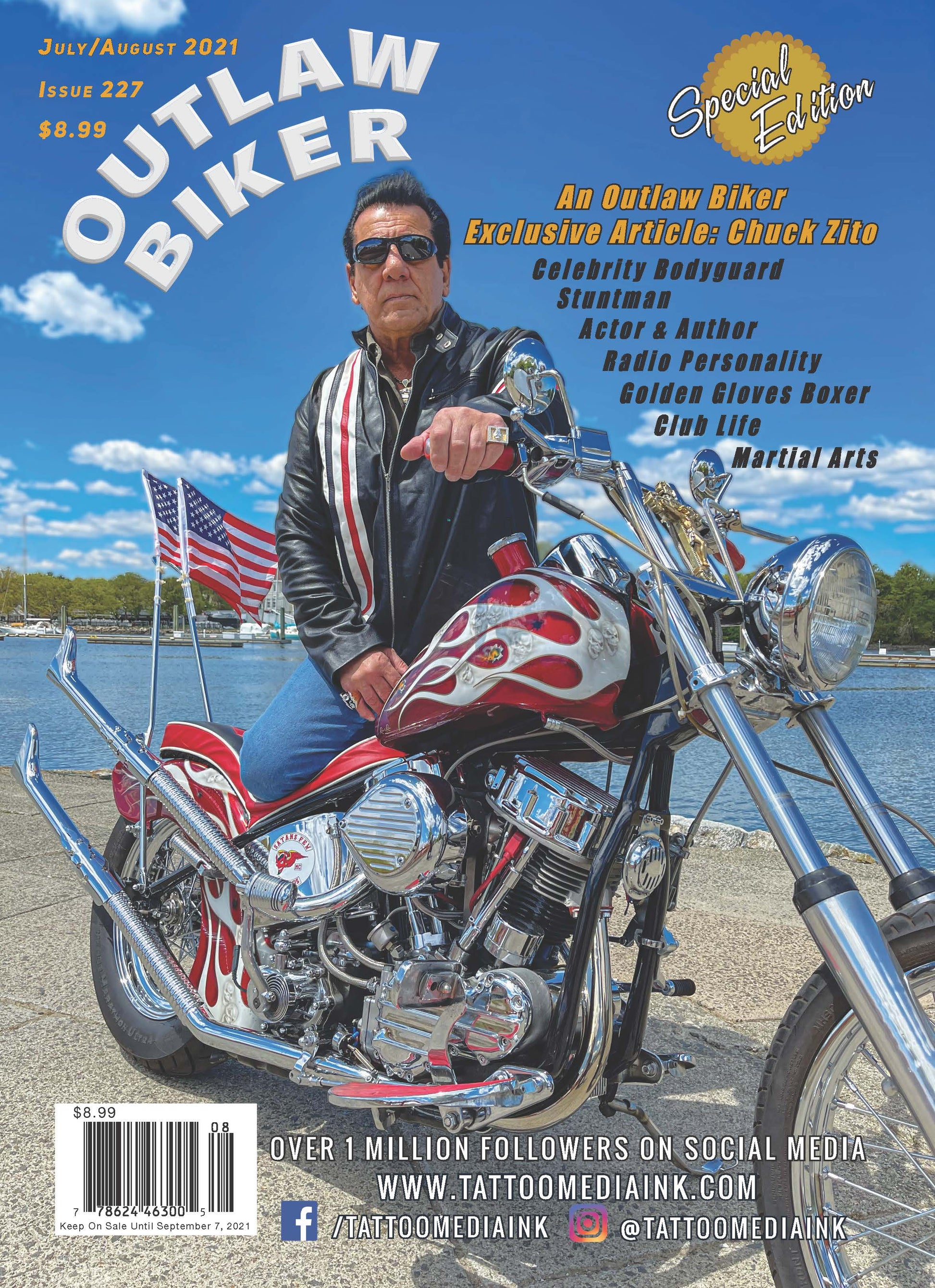 Tattoo Media Ink and Outlaw Biker Magazine present a special collector's edition! Outlaw Biker Issue 227 features the life and times of the legendary CHUCK ZITO! We cover absolutely everything about Chuck in this issue including his early life and family, his time as a Golden Gloves boxer, his career as a martial artist, his life in motorcycle clubs, his time as a radio personality, his career as a celebrity bodyguard, his acting, writing books, being a stuntman for Hollywood and so much more. Also inside this special issue is a brand new photoshoot with Chuck as well as an in depth look at MICKEY ROURKE'S BLACK DEATH MOTORCYCLE! The last time Chuck Zito was on the cover of Outlaw Biker was back on issue 194 from February 2013, so we covered a ton of ground in issue 227 with BRAND NEW NEVER BEFORE SEEN PHOTOS!